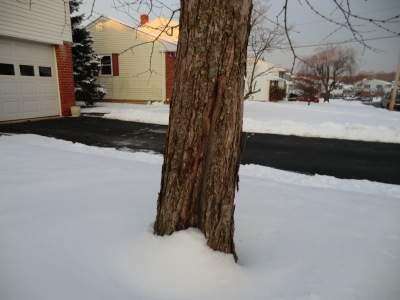 When winter temperatures plummet well below normal, especially after a sunny day when the tree trunk has been warmed by the sun’s rays, different expansion rates between the inner and outer wood can cause such a strain in the trunk that a crack develops.