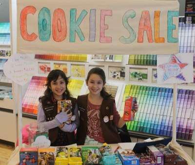 Craving cookies? Izzy Montiel, left, and Addi Ulshafer, of Brownie Troop 807, sell cookies with a smile Saturday at Miller Supply Ace Hardware, Route 329, East Allen Township. Who could resist?PRESS PHOTO BY PAUL CMIL