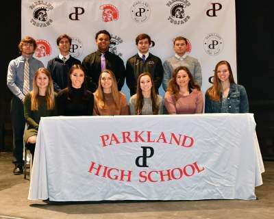 Two sets of teammates and two other senior male student-athletes joined one another at a recent college signing ceremony at Parkland High School.