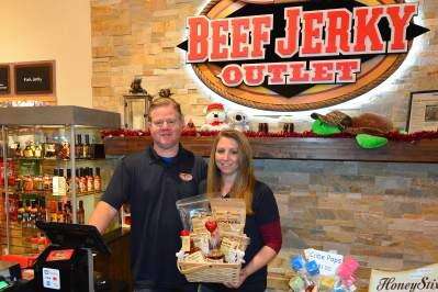 press photos by dana grubbBeef Jerky Outlet owners Michael and Jennifer Merritt also offer gift baskets along with the many jerky products, as well as unique and gourmet style snacks, some from local sources.