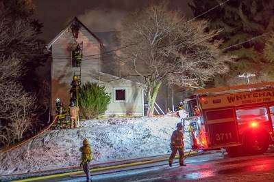 Emergency personnel work to quell a fire March 2 at a two-story home at 1257 Catasauqua Road, Fullerton. According to reports, a passerby called 911 about the fire just before 9 p.m. Due to the high winds that night, it took firefighters more than an hour to bring it under control. In addition to Fullerton, firefighters from West Catasauqua, Hokendauqua and Egypt stations responded. No other Copyright - Scott M. Nagy