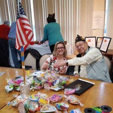 Commander Sheila Berg contacted Jewish Family Services, and the volunteer coordinator, Chelsea Karp, came to the meeting for assistance in putting together 60 gift bags for the Purim holiday, which began Feb. 28.