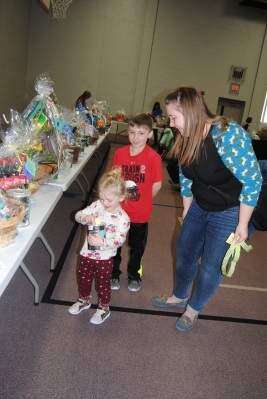 Basket benefitSara Braun of South Whitehall Township, tries desperately to insert her ticket into a can March 11 at the basket social at Jordan Lutheran Church, Orefield. Watching is her brother and mother, Wade and Charlene Braun. Proceeds from the social will benefit church youth attending the 2018 ECLA Youth Gathering June 27 to July 1 in Houston, Texas.PRESS PHOTO BY SUSAN BRYANT