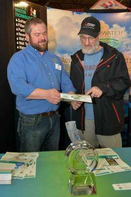 Ben Farrell of Long's Water Technology, Orefield, discusses his product with potential customer Dan Wornhan, of Coopersburg, March 2-4 during the Home Show in the Agri-Plex at the Allentown Fairgrounds, Allentown. Copyright - Lou Wheeland Photography