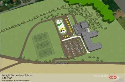 The building will be situated roughly to the right of the existing school, 800 Blue Mountain Road, Walnutport, Lehigh Township. The site of the old school will become a parking lot, school bus loop and student drop-off area, and soccer fields.