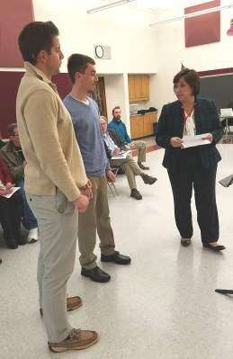 Physical Education teachers Philip Russell and David Jost spoke to the school board in the hope of gaining their support for the implementation of rock climbing walls at the Saucon Valley MS gymnasium.