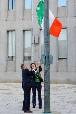 Wintery weather greets Irish flag raising Tweet Published March 19. 2018 12:00AM by The Press PRESS PHOTO BY DANA GRUBBAs snow flurries swirl around Payrow Plaza, Bethlehem Police Captain Anthony Leardi and Kelley Andrade, assistant to the mayor, begin to hoist the Irish flag at the March 16 ceremony.