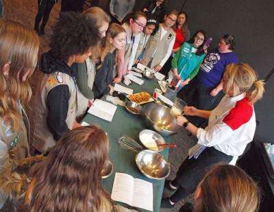The event kicked off with a Girl Scout-only portion with four local female celebrity chefs. They were: Ashley Sherman, who is the executive sous chef for Aramark at SteelStacks and a 2014 Hell’s Kitchen contestant; Heather Williams, who was the 2017 Hell’s Kitchen runner-up; Lucy Chelton, who is a Chopped Jr. winner and a former Girl Scout herself; and Sarah Sobers, who is a sous chef at Buddy V’s Ristorante at the Sands Casino.