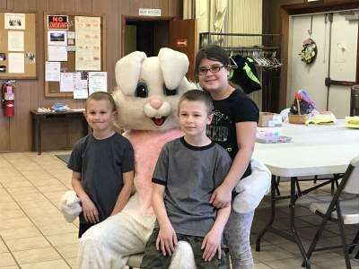 Jerusalem Evangelical Lutheran Church of Eastern Salisbury held its annual Easter egg hunt for Sunday School students March 24. Due to the recent snow storm, the egg hunt was replaced with Easter Bunny activities and a visit from the big guy himself. ABOVE: Jace Frantz, Zachary Frantz and Aubree Solarek, take a photo with the Easter Bunny.