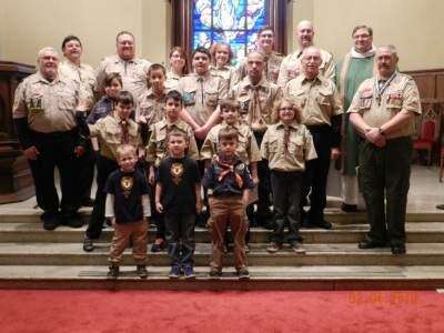 Contributed photoMembers of Cub Pack 94 participate in Scout Sunday Feb. 14 at St. Paul's Evangelical Lutheran Church, Howertown Road, Catasauqua. Pictured are, row one, Travis Necessary, Nolan Valero and Jonny Valero; row two, Seamus Deibert, Jayden Gruver, Nathan Mulchany-Brown and Nathan Scholl; row three, John Molchany, Joseph Gearhart, Gavin Cunningham, Lawson Szerencits, Joe Gruver, Tim