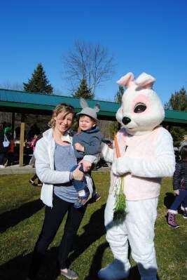 Silas and friendBritta and Silas Zolomij of Fogelsville are all smiles as they visit the Easter Bunny March 31 at St. John's Evangelical Lutheran and St. John's UCC combined Easter Egg Hunt at Upper Macungie Park, Fogelsville.PRESS PHOTO BY SUSAN BRYANT
