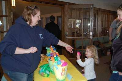 By 2:30 p.m., kids were registering for the 3 p.m. event. From the registration table they went to a prize egg table.