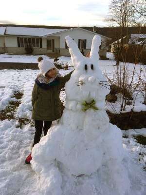 Snow Bunny Tweet Published April 12. 2018 12:00AM by The Press PRESS PHOTO COURTESY THE NESTOR FAMILYRosy Nestor of Kempton talks with the family's snow bunny following the March 22 storm.