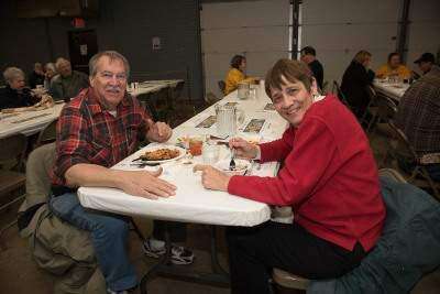 PRESS PHOTOS BY LOU WHEELANDJim and Karen Osmun of Schnecksville enjoy the great spaghetti and sauce made by chef Mark Krause at the recent Upper Lehigh Lions Club fundraiser at the Schnecksville Fire Company. Copyright - Lou Wheeland