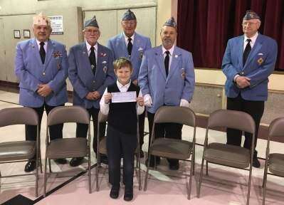 CONTRIBUTED PHOTOSt. Elizabeth Regional School third-grader Collin Paone, of North Catasauqua, is the second-place winner at the national level of the Catholic War Veterans patriotic poster contest. Pictured with Collin are CWV Post 454, Northampton, members, from left, 2VC Peter Wlodek, trustee John O'Connell, 3VC Richard Huber, acting commander John Bowen and OD Michael Motsko.