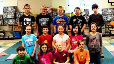 PRESS PHOTO BY LINDA DEIBERTWeisenberg Elementary celebrated Dr. Seuss' birthday in February by wearing T-shirts with the words wacky hair day, wear fun footwear and more written on them. Students Jonah Lawrence, Alanna Lynch, Lily Allred, Lydia Reimert, (middle) Olivia Snyder, Jack McGinley, Alexandra Sparrow, Haley Dietrich, Morgan DeLong, (back) Luke Fugazzotto, John Gengaro, Wesley Ruhe, Kairi
