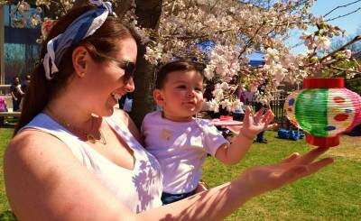 A rite of spring Tweet Published April 23. 2018 12:00AM by Tim Gilman Special to the Bethlehem Press PRESS PHOTOS BY TIM GILMANSandra Lozano of Easton shows her son, Victor Gonzalez, a Japanese lantern hanging from a blossoming cherry tree. More photos on A2.