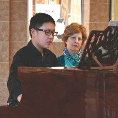 PRESS PHOTOS BY ED COURRIERWith his music teacher, Martha Schrempel, by his side, Vjay Hou performs at the 36th Annual Hannah Young Play-A-Thon. Hou from Lower Nazareth has studied piano for six years. Copyright - &Copy; Ed Courrier