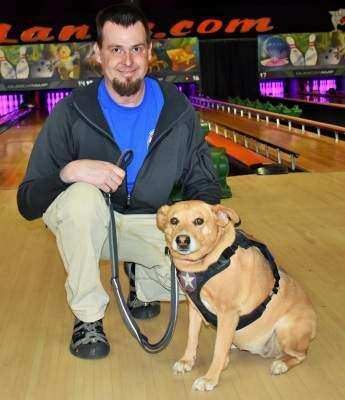 PRESS PHOTOS BY TINAMARIE MARTINTodd Heleva, of Northampton, and his service dog Liberty enjoy the day at Hampton Lanes. “My best friend Liberty is part of my family,” Heleva said. “If I am in distress, she knows right away.”