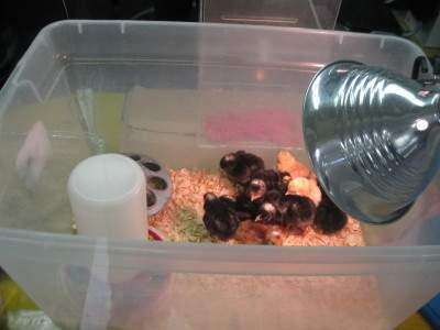 By the beginning of the second week, the eggs were hatching and the cute little brown and golden chicks came to life and were placed in a brooder box.