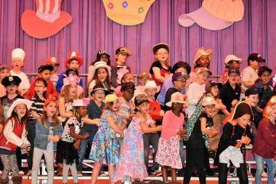 Press photo by TinaMarie MartinSecond-graders open the annual Sheckler Elementary School program April 25 with “Path to the Moon.” Students later performed their dance moves while singing “Keep Your Head in the Game.” The event was themed “Hats.”