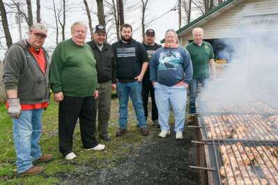 PRESS PHOTO BY LOU WHEELANDThe outside crew at Kuhnsville Lions Club chicken barbecue April 28 were Larry Moyer, Dale Clauser, David Wisser, Matt Brand, Jamie Roberts, Ed Schmidt and Dick Schreiner, club secretary. Copyright - Lou Wheeland Photography