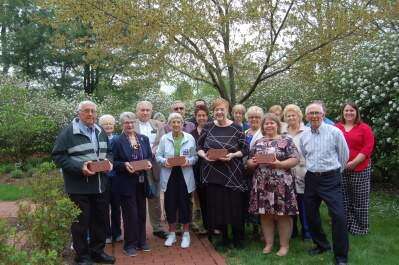 Members of the congregation of St. John's Lutheran Church, Emmaus, gathered May 6 for a brick ceremony at the Emmaus Remembrance Garden at Knauss Homestead. The congregation installed five bricks to honor the church. ABOVE: Among those attending the ceremony are, front from left, Rev. Fred S. Foerster, pastor emeritus and his wife Mary “Mimi” Foerster; Nancy Reimert, wife of Minister Emeritus
