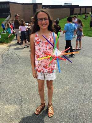 Press photo by Samantha AndersonAllisandra German's plastic straw contraption perfectly cradles and protects her egg from the fall during Sheckler Elementary School's fourth-grade egg drop event held May 4. See additional photos on page A15.