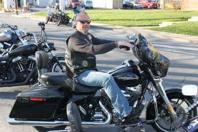 Press photos by Paul CmilRich Scherb leads the April 20 bike night to Catasauqua's American Legion Post 215 on his Harley Davidson Street Glide.