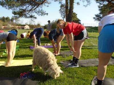 Some goats sat on the mats, others nuzzled like chicks to their mothers, while one brazen herd member even walked on a participant.