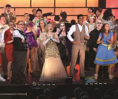 PRESS PHOTOS BY ED COURRIERZoe Mulzet (center), nominated for Outstanding Featured Performance by an Actress, takes the spotlight during the opening number at the 2018 Freddy Awards, held May 24 at the State Theatre, Easton. Copyright - &Copy; Ed Courrier