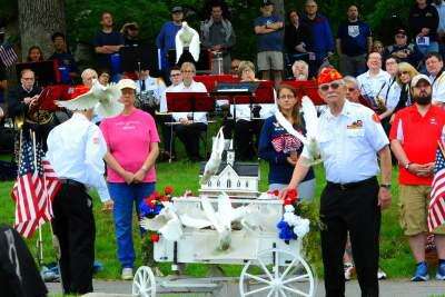 PRESS PHOTO BY DANA GRUBBSignaling a wish for eternal peace, doves were released during the Memorial Day service. They were provided by Heaven's Doves.