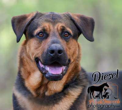 Diesel, a 3-year-old Rottweiler mix, is a big boy (125lbs) looking for an active family. His first impression leaves something to be desired, but he is a great dog who loves to play.