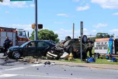 North Whitehall Township firefighters, Pennsylvania State Police and Northern Valley Ambulance Corps personnel responded June 15 for this two-vehicle accident at the corner of Route 309 and Packhouse Road, Schnecksville, near the Schnecksville Fire Company.