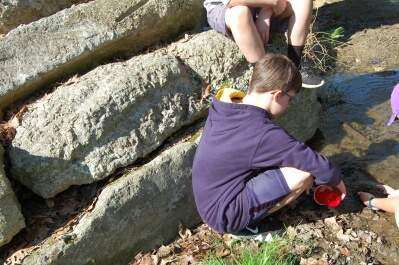 Nestle Waters Deer Park and the Wildlands Conservancy come each year to help the students with a lesson on what lives naturally in Ontelaunee Creek before the fish are released in the water.