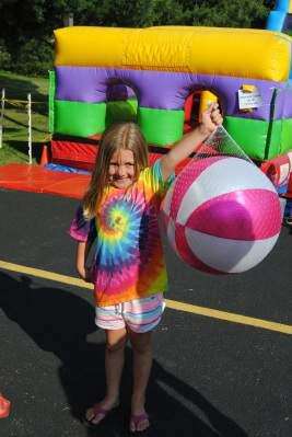 Olivia Fabian, 6, of New Smithsville, is all smiles after winning a pink and white beach ball at the No. 40 Wheel Game June 17 at the summer festival at St. Joseph the Worker Church, Orefield.PRESS PHOTO BY SUSAN BRYANT