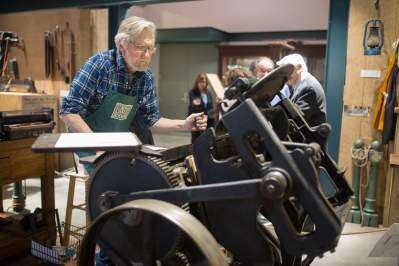The press which can churn out 1,000 prints an hour at full speed, is slowed down at Kutztown so visitors can see how it works. Historians will be on hand to talk about the process and the machinery.