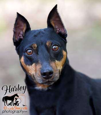 Harley is a 5-year-old miniature pinscher surrendered when his owner was no longer able to care for him. He likes people and other dogs. Harley is good with children.