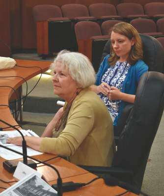 A steel rollup garage door and egress entrance for the magistrate’s parking area was approved for the west wall that connects the two building façades.