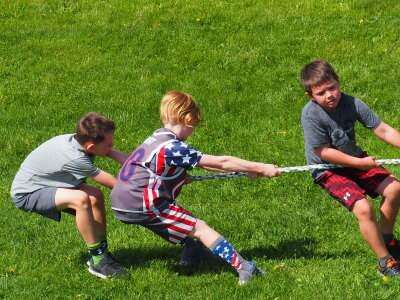 PRESS PHOTOS BY LINDA DEIBERTWeisenberg Elementary students in kindergarten through second grade, under the direction of gym teacher Chris Klein, enjoyed a day of fun May 9. Liam Nicholas, Kendall Wikert and Nicholas Schmoyer play tug-of-war.