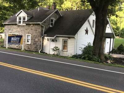 PRESS PHOTO BY BERNIE O'HAREGOP Congressional candidate Marty Nothstein opened his campaign headquarters at 4260 Nazareth Pike in Bethlehem Township Monday even though the building was vandalized over the weekend when someone threw a piece of concrete through a first floor window. According to building owner Abe Atiyeh, there is security footage at 4260 Nazareth Pike in Bethlehem Township. No