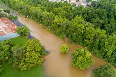 PRESS PHOTOS BY SCOTT M. NAGYIn this Aug. 4 photo, Eberhart Road in Hokendauqua is flooded due to the recent storm that occurred midafternoon Friday to early-morning Saturday. Emergency personnel had sounded the alarm, alerting residents a flash flood warning was in effect.