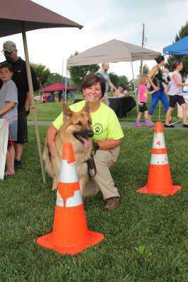 PRESS PHOTOS BY BERNIE O'HAREStar of the evening Elvis, a 4-year-old Shiloh Shepherd, with K-9 Officer Sue Narkin.