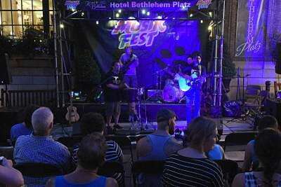 MUSIKFEST PHOTOS Tweet Published August 14. 2018 12:00AM by DANA GRUBB Special to the Bethlehem Press PRESS PHOTO BY DANA GRUBBStroudsburg-based alternative rockers ‘From the Dark River' perform at Hotel Bethlehem Platz Aug. 7.