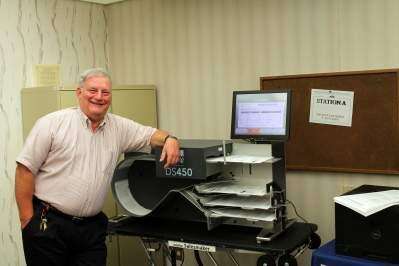 press photos by bernie o'hareNorthampton County election worker Richard Kessler operates a separate machine that can scan up to 90 absentee ballots per minute