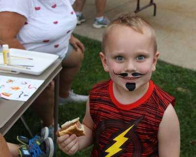 Bailey Kutz shows off his new mustache and beard at Catasauqua's National Night Out, held Aug. 7 at St. Paul's Evangelical Lutheran Church.PRESS PHOTO BY PAUL CMIL