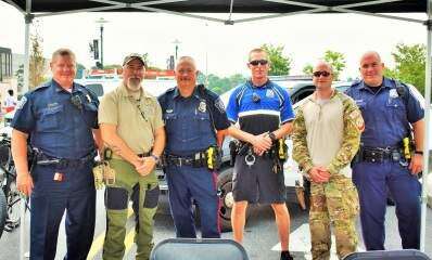 PRESS PHOTOS BY TINAMARIE MARTINWhitehall Township police personnel take part in a National Night Out event held Aug. 7 at Lehigh Valley Mall, Whitehall. Pictured are Jeff Minarovic, Rich Garner, Andy Artim, Bruce Somers, Mark Schwendeman and Jeff Apgar.