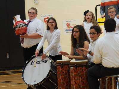 PRESS PHOTOS BY LINDA DEIBERTFifth grade band and chorus students at Northwestern Elementary School showed their classmates and families at the end of the school year what they have learned. Drummers Cody Utt, Grace Bilowith, Shannon Green, Jarrett Jones, (back) Rhiannon Haas and Logan Miller perform under the direction of music teacher Shawn Fies.
