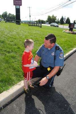 As two of the officers stood close by watching and listening to the adults argue, a young boy, Severin Johnson Jr., of Bethlehem, walked up to and spoke with Upper Macungie Police Officer Mike Cardell, who knelt down to speak with the youngster.