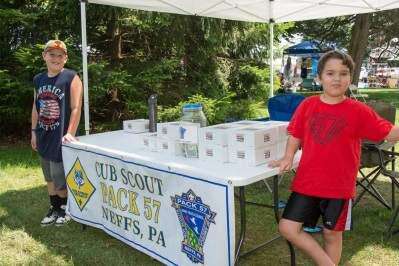PRESS PHOTO BY LOU WHEELANDBoy Scout Troop 57, Union United Church of Christ, Neffs, had a good day selling Krispy Kreme doughnuts at the Upper Lehigh Lions Club Crafts in the Grove fundraiser. Vendors from throughout the region set up canopies and chatted with buyers and browsers throughout the afternoon. Webelo Second Michael Evans and Bear Robert Graham handled sales. Copyright - Lou Wheeland Photography